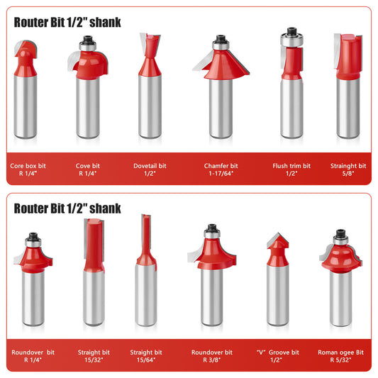 1/2 handle 12-piece woodworking milling cutter set Engraving machine/bakelite milling/trimming machine, cutter head set cutter