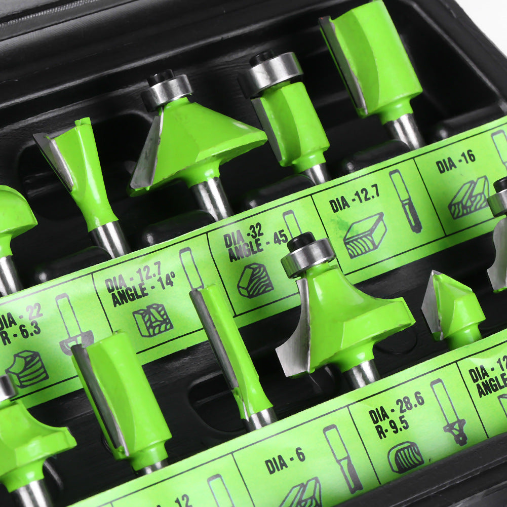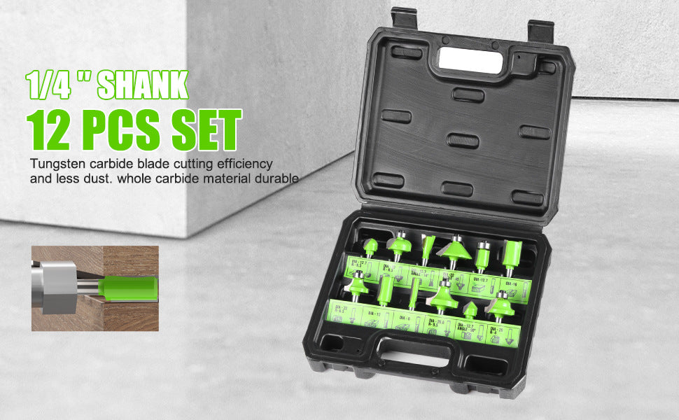 12-Piece set of 1/4 handle woodworking milling cutter set, trimming machine cutter head, bakelite milling engraving machine, milling cutter, trimming cutter 12PC