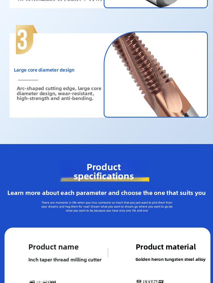 High Rigid Inch Tapered Pipe Thread Milling Cutter PT/RC Alloy Milling Cutter for Hardened Steel and Aluminum