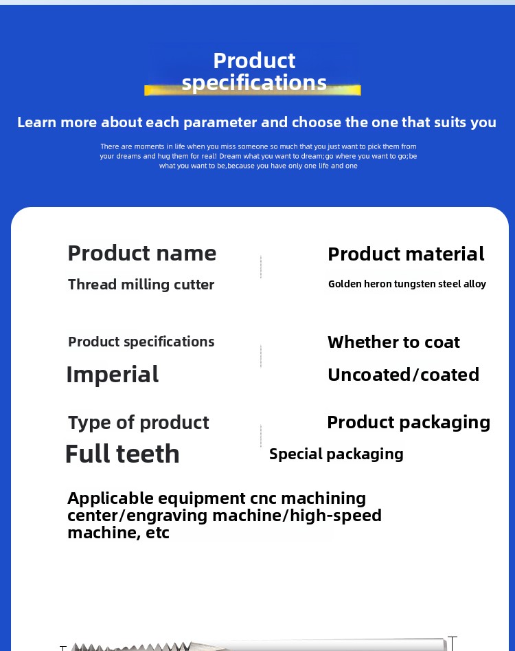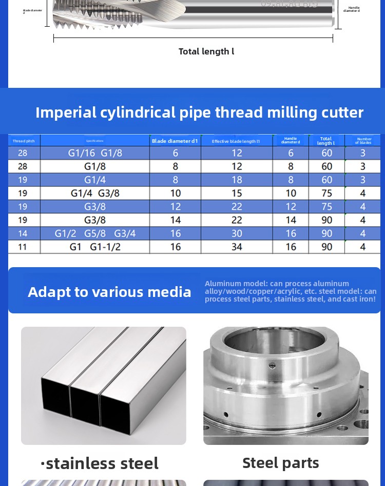 Inch tungsten steel cylindrical pipe thread milling cutter sealed type CNC numerical control tool G1/4 steel coating