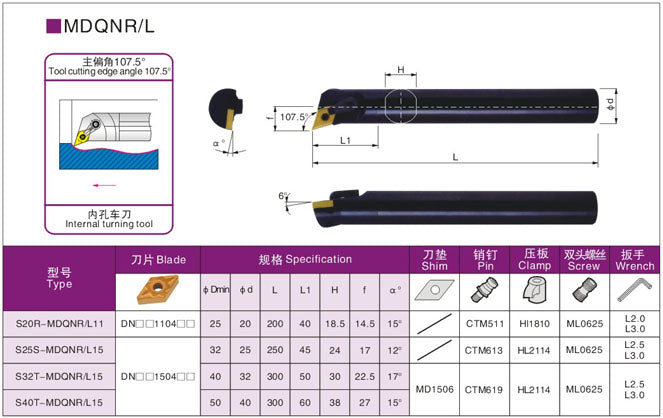 Lathe Turning Holder S20R/S25S/S32T/S40T/S50U-MDQNR15/MDQNL15