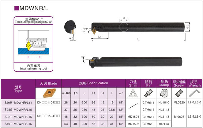 Lathe Turning Holder S25S/S32T/S40T-MDWNR15/MDWNL15