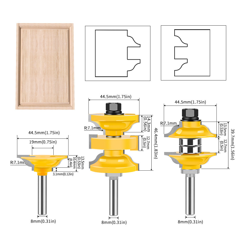 Three-piece set of door panel knives, door frame tenon knives, one-time forming, solid wood door knives, cabinet door panel knives, tenon knives, splicing
