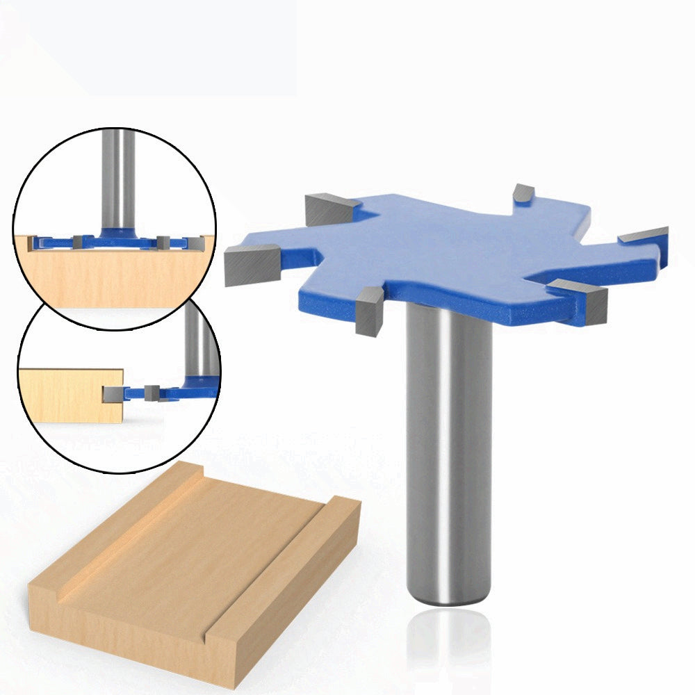 Woodworking milling cutter 6-blade T-knife mahogany six-tooth large T-knife with handle slot knife plus long handle, thickness 5mm
